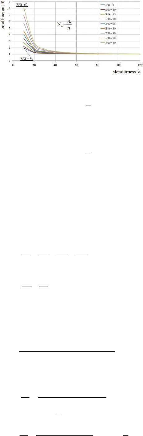 η – współczynnik zmniejszający siłę krytyczną liczoną z wzoru Eulera