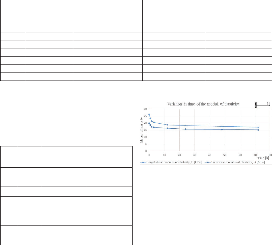 the value of the moduli of elasticity of wood in time. The