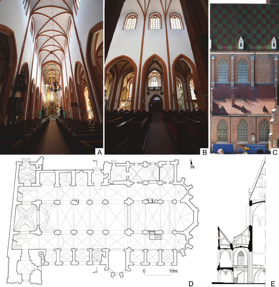 Badania architektoniczne przeprowadzone na obiekcie ujawniły szereg cech konstrukcyjnych odbiegających od typowych rozwiązań gotyckich. Artykuł przedstawia wyniki tych badań w kontekście historycznych katastrof budowlanych, które dotknęły świątynię, oraz analizuje możliwe przyczyny techniczne tych zdarzeń.