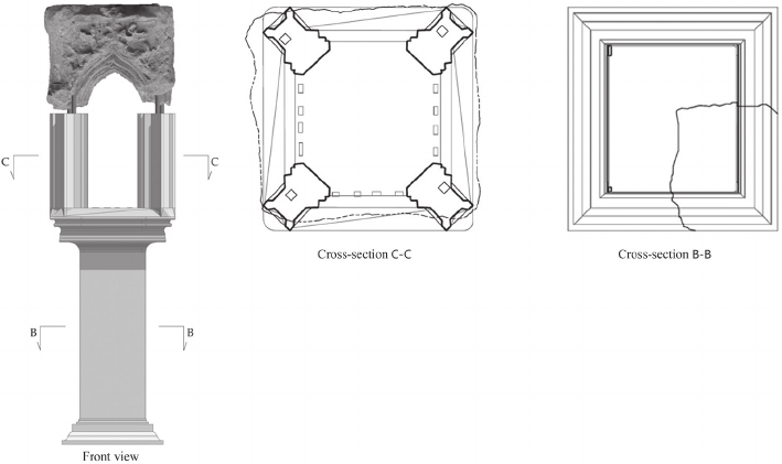 buildings, the cornice of the nial was rotated by 45 degrees.